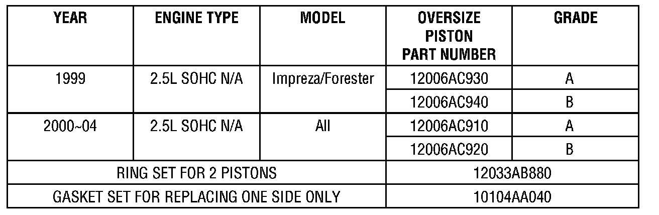 This service bulletin is to inform you that Fuji Heavy Industries. Ltd. (FHI) has revised the maximum bore diameter and the out of roundness limits of the cylinder bore. In conjunction with this, they have also released 60-micrometer (0.0024") oversized pistons.