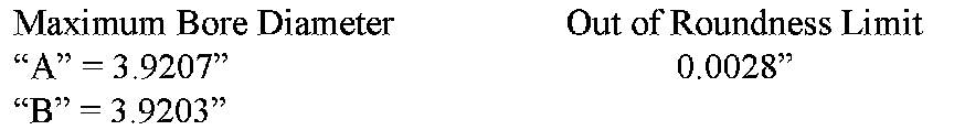 When engine disassembly for repair is necessary the revised specifications must be used. The revised maximum bore diameter and the out of roundness limits of the cylinder bore are as shown.