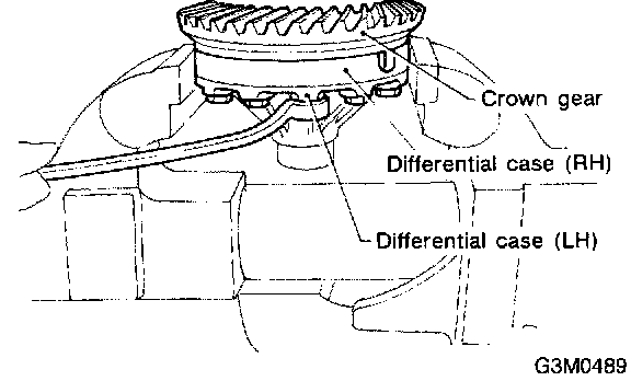 2. Secure the case in a vise and remove the crown gear tightening bolts, then separate the crown gear, case (Right-Hand) and case (Left-Hand).