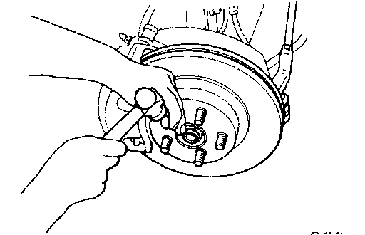 - Always tighten axle nut before installing wheel on vehicle. If wheel is installed and comes in contact with ground when axle nut is loose, wheel bearings may be damaged.