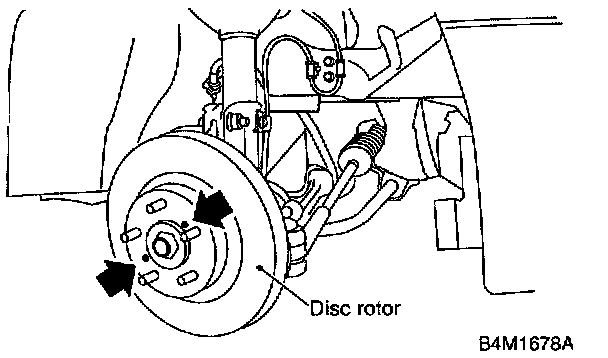 7. Remove disc rotor from hub. If disc rotor seizes up within hub, drive disc rotor out by installing an 8-mm bolt in screw hole on the rotor.