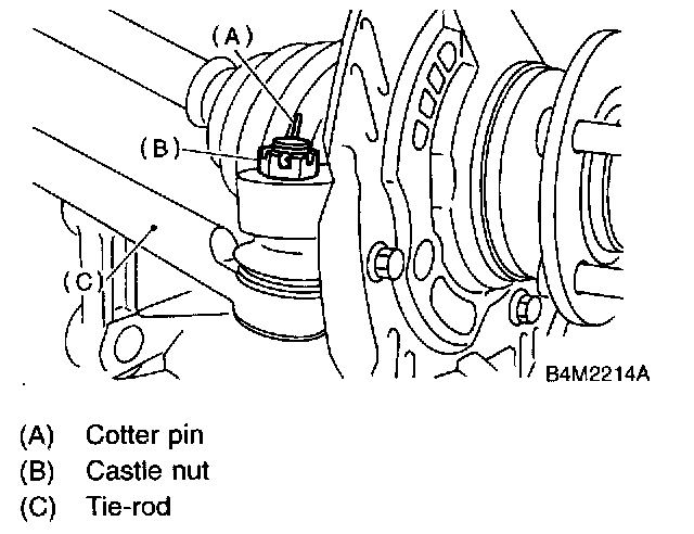8. Remove cotter pin and castle nut which secure tie-rod anti to housing knuckle arm.