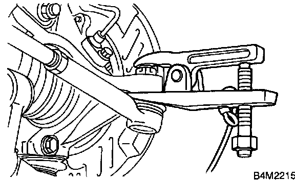 9. Using a puller, remove tie-rod ball joint from knuckle arm.