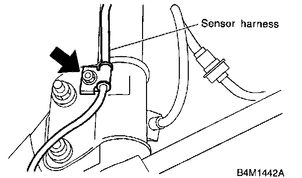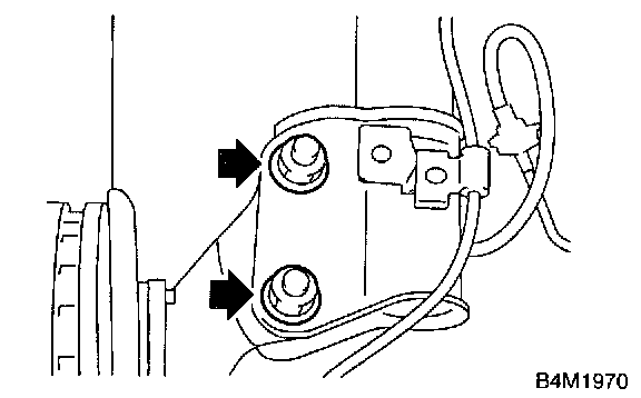 15. After scribing an alignment mark on camber adjusting bolt head, remove bolts which connect housing and strut, and disconnect housing from strut.