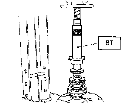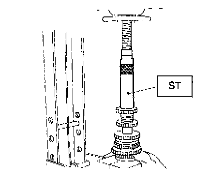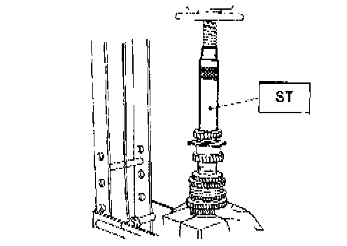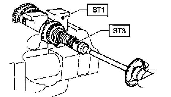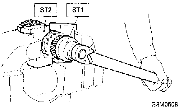 2. Using ST1, ST2 and ST3, tighten lock nut to the specified torque.