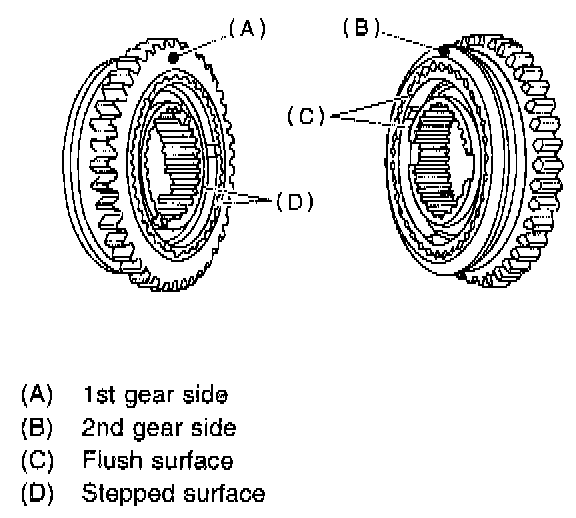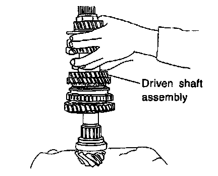 2. Install 1st driven gear, 1st baulk ring, gear and hub assembly onto driven shaft.