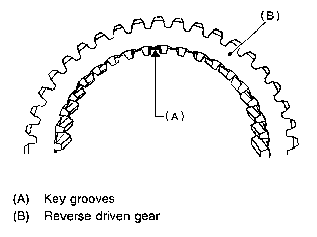 ^ Be sure the insert keys are correctly located in the insert key grooves inside the reverse driven gear.