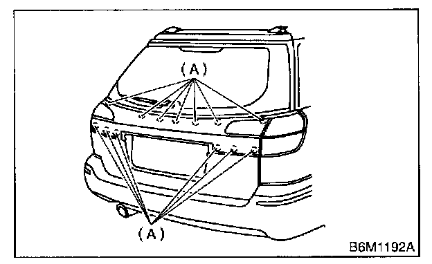 3. Remove bolts (A) and then remove rear finisher light from rear gate.