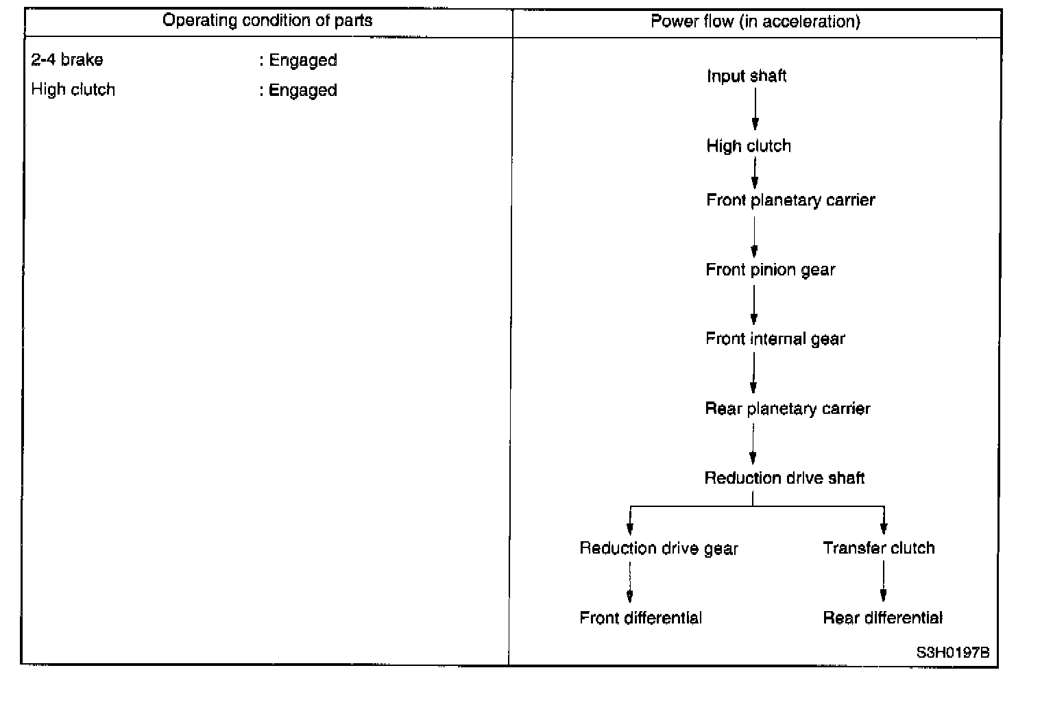 During coasting, therefore, the back driving force from the reduction drive gear is transmitted to the input shaft. This means, unlike the 1st speed in D or 3 range, that the engine braking effect is available in this range.