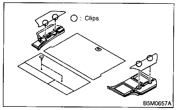 1. Remove clips, then detach rear floor boxes.