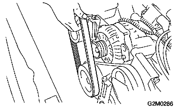 9) Install generator and V-belt in the reverse order of removal, and adjust the V-belt deflection.