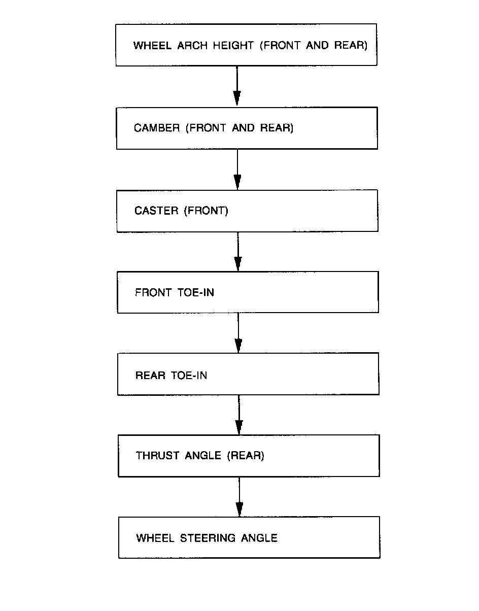 Check, adjust and/or measure wheel alignment in accordance with procedures indicated in figure: