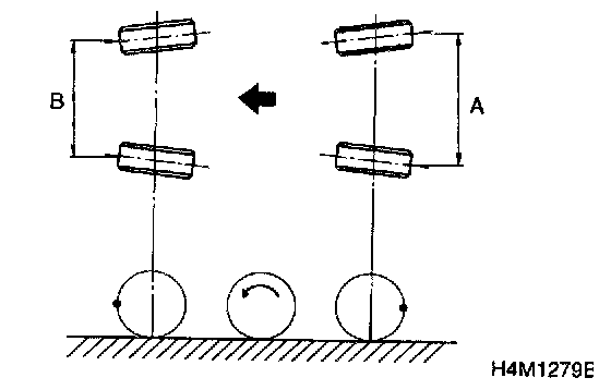 2. Mark rear sides of left and right tires at height corresponding to center of spindles and measure distance "A" between marks.