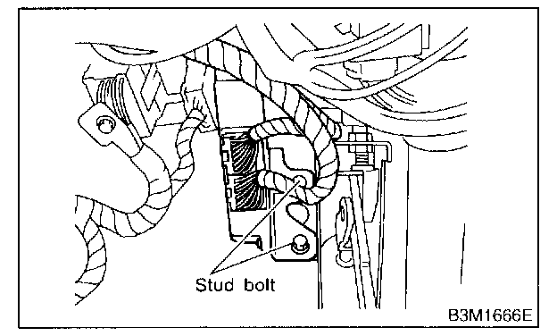 9. Use TCM mounting stud bolts at the body head grounding point when measuring voltage and resistance inside the passenger compartment.