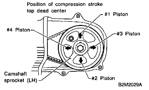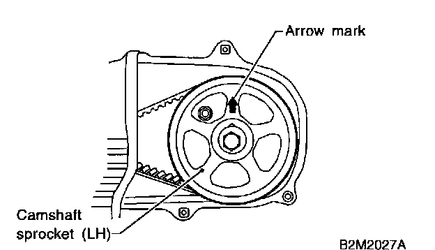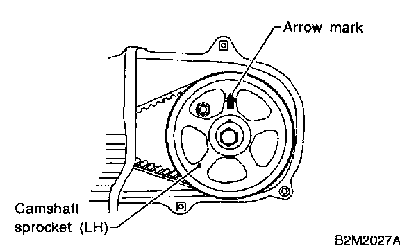 NOTE: When arrow mark on camshaft sprocket (LH) comes exactly to the top, #1 cylinder piston is brought to the top dead center of compression stroke.