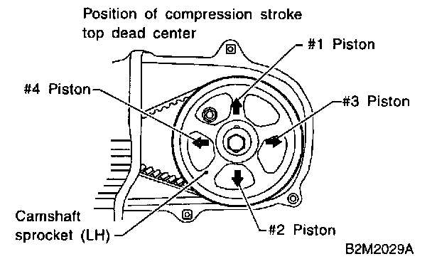 Note: When arrow mark on camshaft sprocket (LH) comes exactly to the top, #1 cylinder piston is brought to the top dead center of compression stroke.