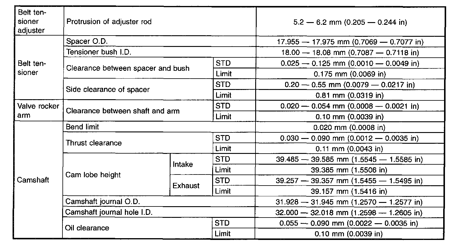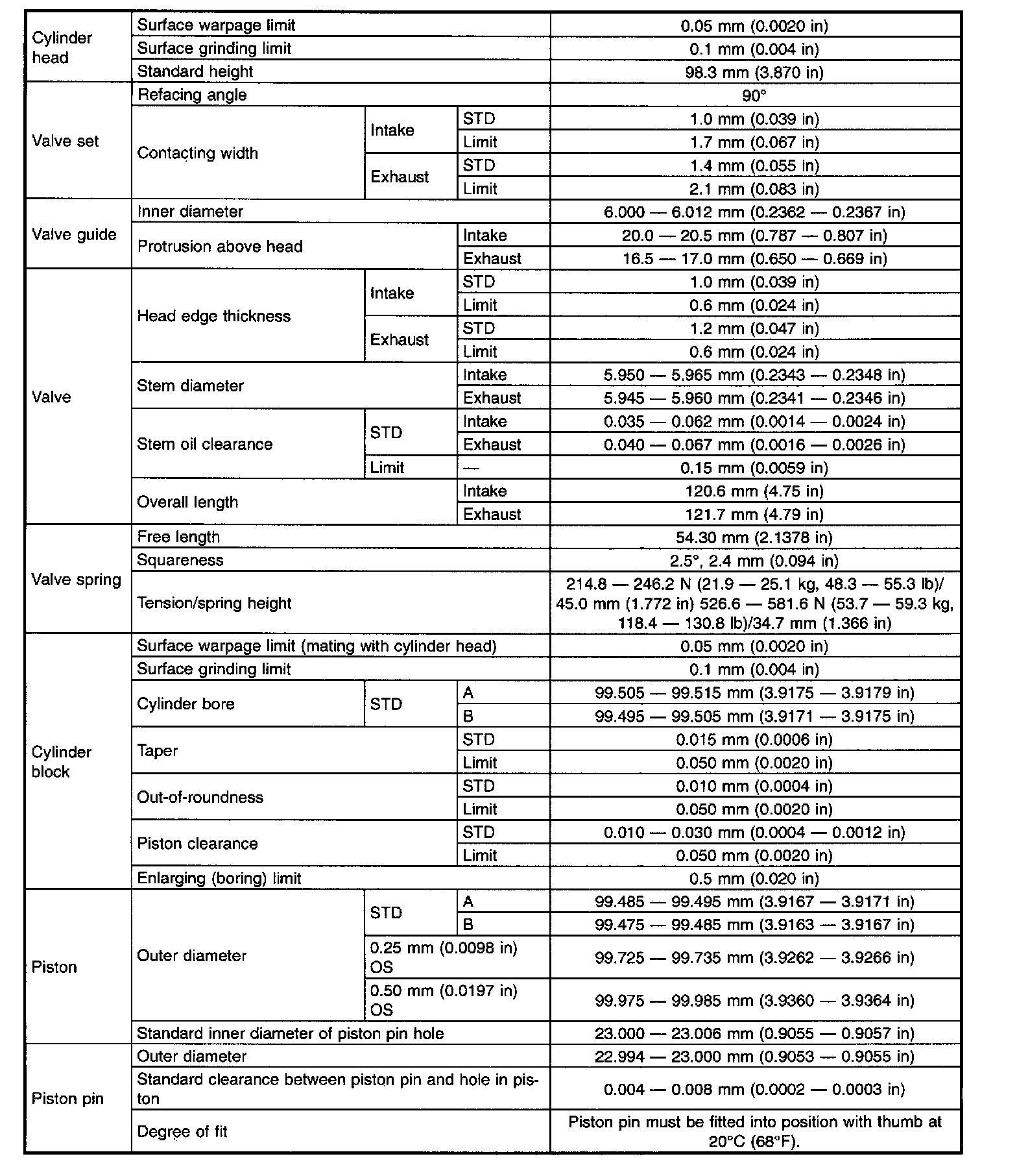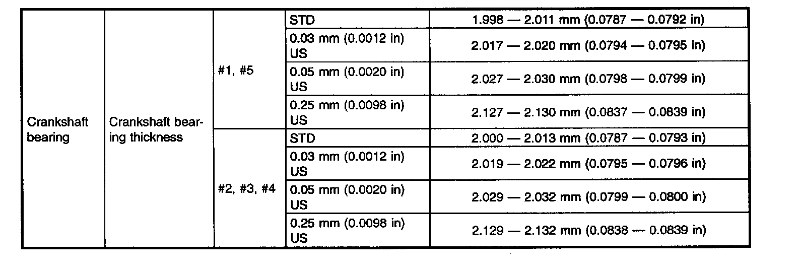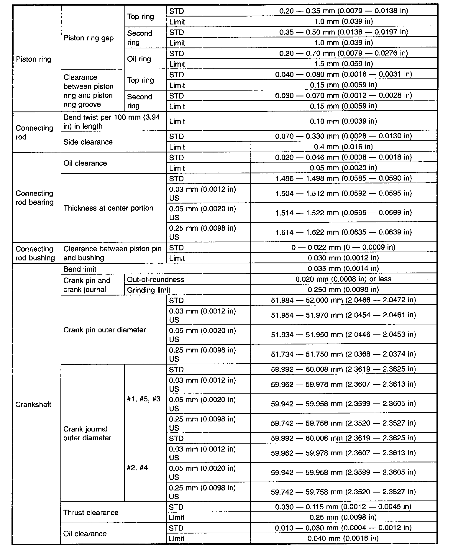 STD: Standard, I.D.: Inner Diameter, O.D.: Outer Diameter, OS: Oversize, US: Undersize