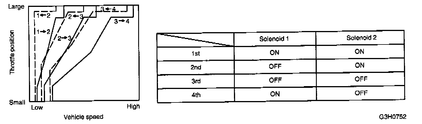 ^ Control module activates both solenoids 1 and 2 in response to throttle and vehicle speed signals.