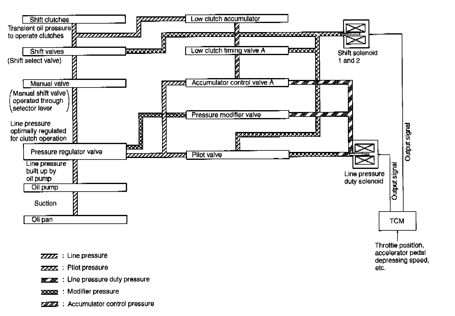 ^ The pilot pressure applied to the pressure modifier valve is regulated by the line pressure controlling line pressure duty solenoid and changed into the pressure modifier pressure.