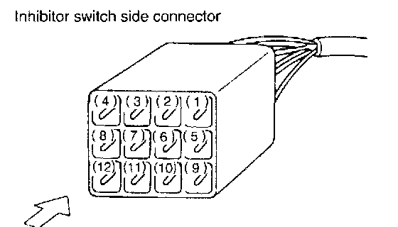 NOTE: If inhibitor switch is inoperative, check for poor contact of connector on transmission side.