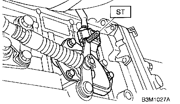 3. Insert Service Tool ST as vertical as possible into the holes in the inhibitor switch lever and switch body.