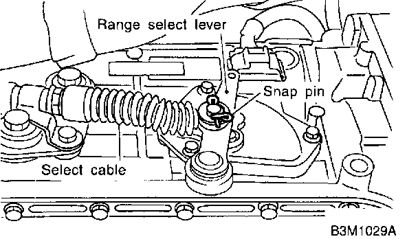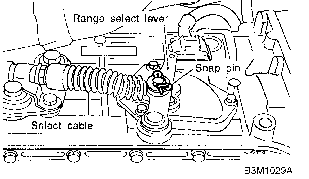 5. Remove snap pin from range select lever.
