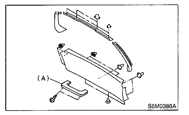 1. Remove rear gate inner handle (A) from rear gate and then detach trim panel.