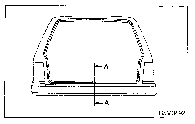 1. Place weatherstrip so that its joints meet at lower center of vehicle body, and install by insert mg flanged portion from below, as shown in section A-A in the figure.