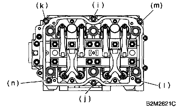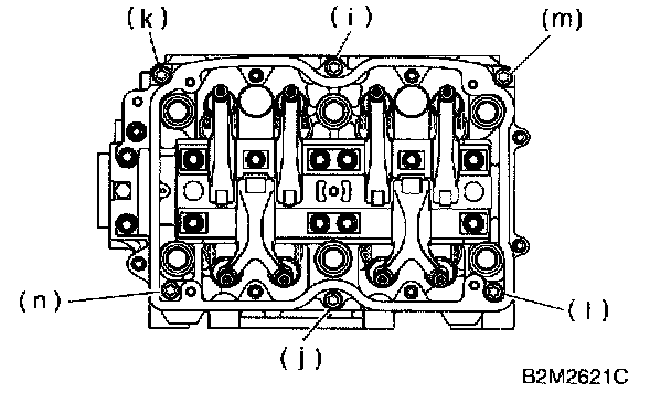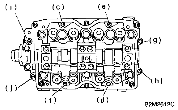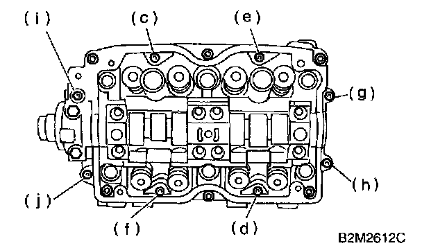 b. Equally loosen bolts (c) through (j) all the way in alphabetical sequence.
