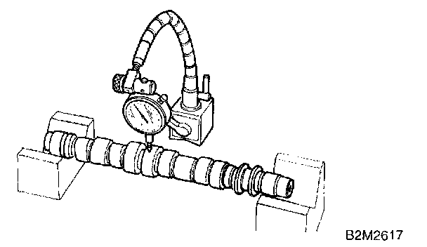 Measure the thrust clearance of camshaft with dial gauge. If the clearance exceeds the limit, replace camshaft support.