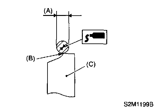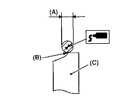 NOTE: Apply a coat of 3 mm (0.12 inch) dia. (A) liquid gasket along edge (B) of camshaft cap (C) mating surface.