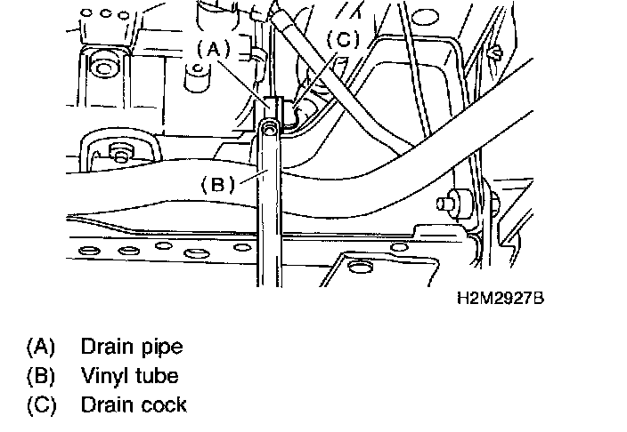 4. Loosen drain cock to drain engine coolant into container.