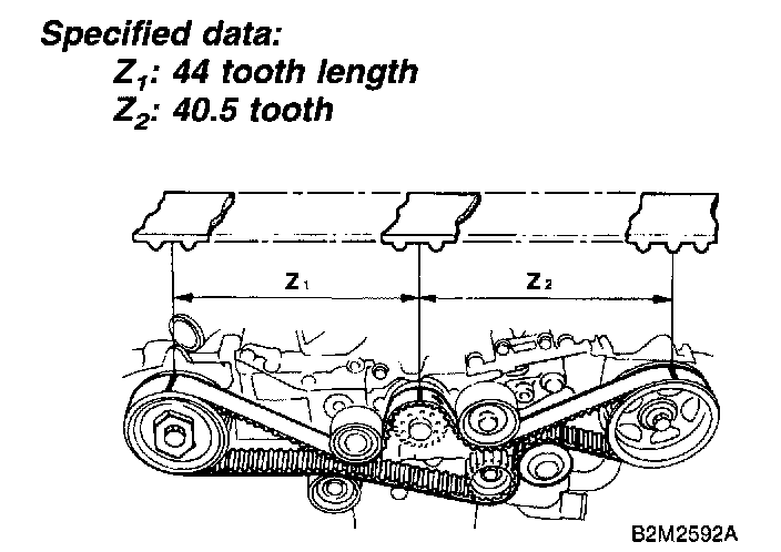 1. Check timing belt teeth for breaks, cracks, and wear. If any fault is found, replace belt.