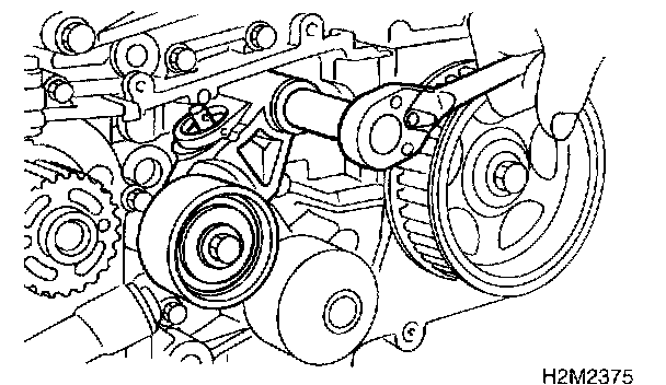 CAUTION: After properly installing timing belt, remove rocker cover and ensure that the valve lash adjuster contains no air.