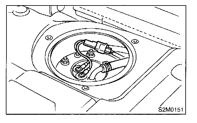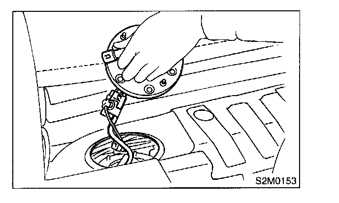 6. Remove bolts which install fuel sub level sensor on fuel tank.