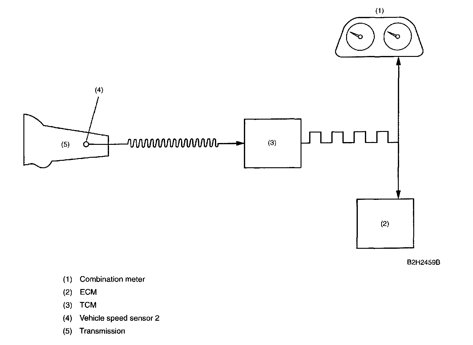 - The vehicle speed sensor 2 generates a 16-pulse signal for every rotation of the front differential and send it to the TCM. The signal sent to the TCM is converted there in a 4-pulse signal, and then sent to the ECM and the combination meter.