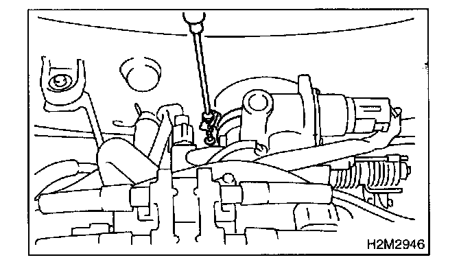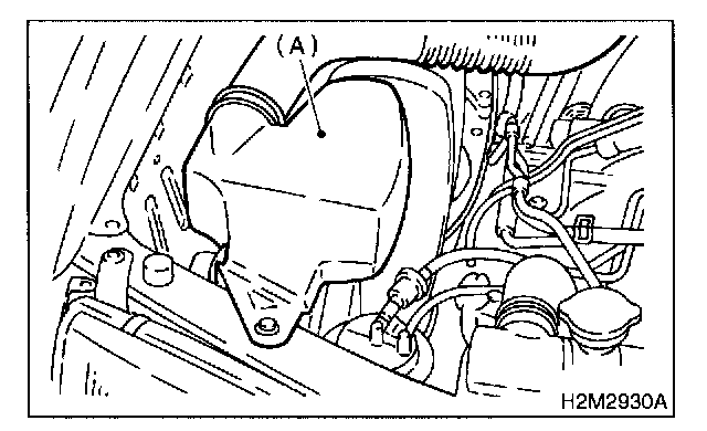 2. Remove bolt which installs air intake duct (A) on the front side of body.