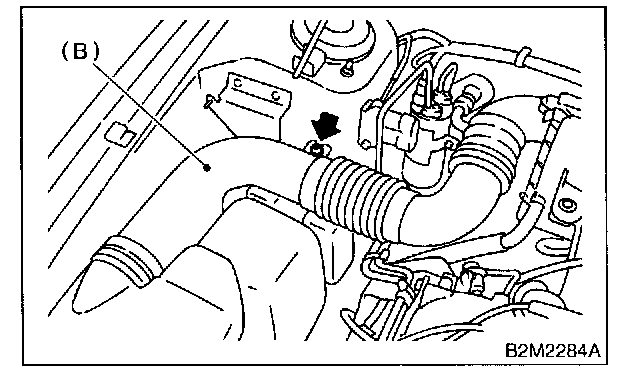 3. Remove bolt which installs air intake duct (B) on body.
