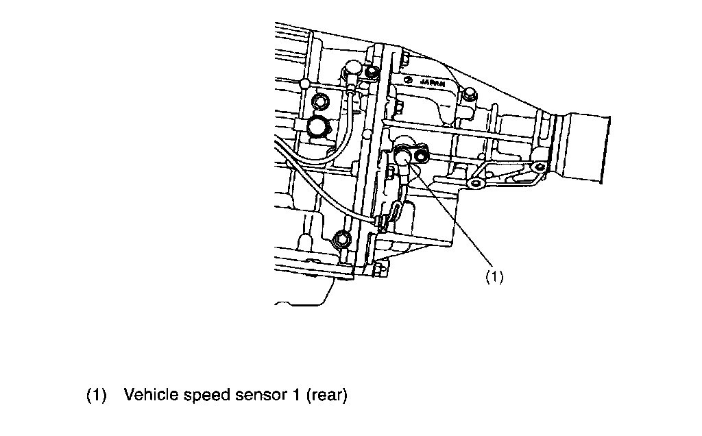 The vehicle speed sensor 1 (output shaft rotation sensor) is mounted to the extension case (from the outside of the case). It detects the rear wheel speed based on the peripheral speed of the transfer clutch drum and sends sine wave signals (30 pulses per rotation) to TCM.
