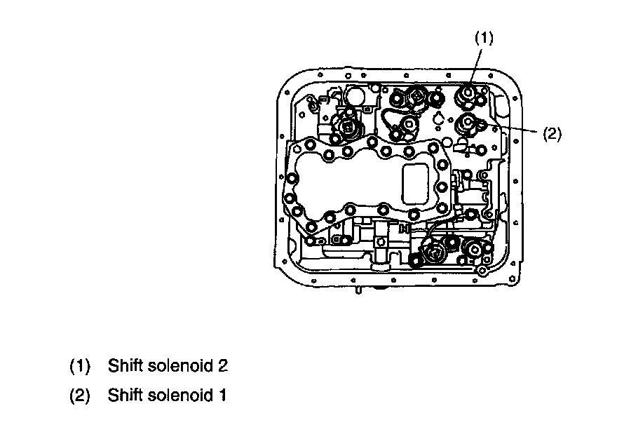 These solenoids are mounted to the control valve. They are turned ON or OFF according to signals sent from the TCM. The gear positions are changed according to the ON and OFF condition of these solenoids.