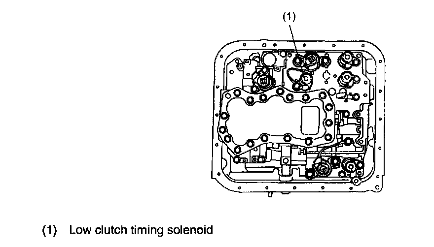 This solenoid is mounted to the control valve, and it is turned ON or OFF according to the signal sent from the TCM. It then controls the low clutch timing valve B and reverse inhibit valve.