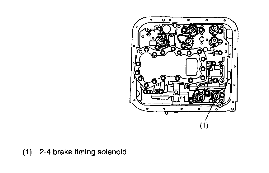 This solenoid is mounted to the control valve, and it is turned ON or OFF according to the signal sent from the TCM. It then controls the 2-4 brake timing valve B for decreasing the change gear shock.