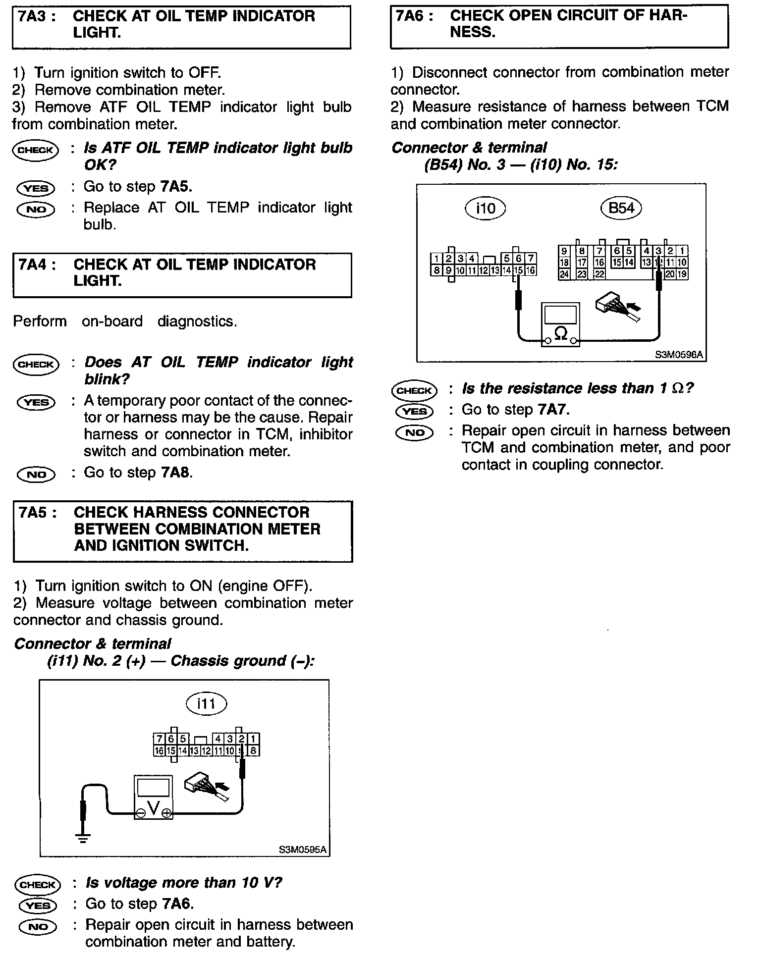 A: AT OIL TEMP INDICATOR LIGHTDIAGNOSIS: The AT OIL TEMP indicator light circuit is open or shorted.
