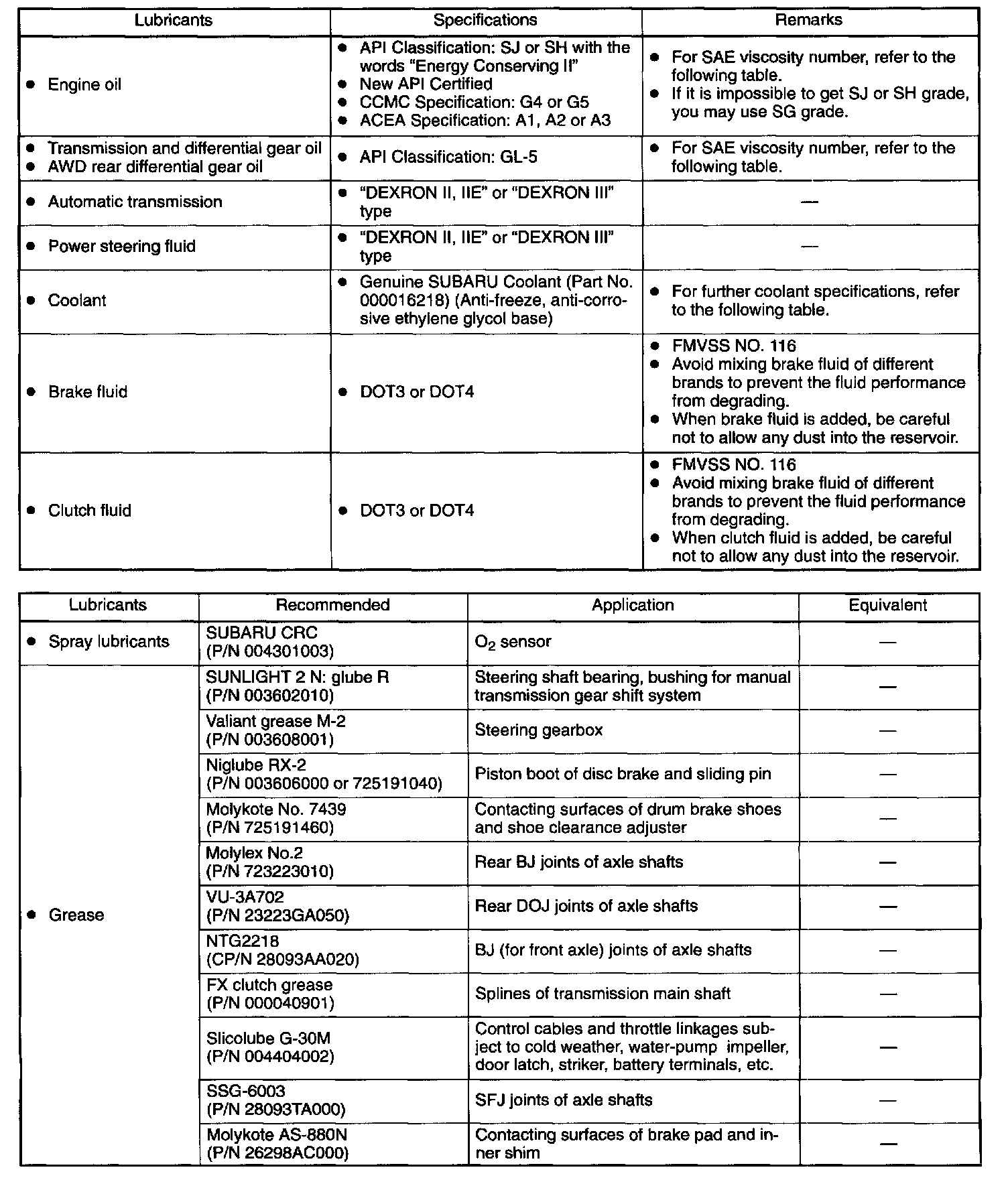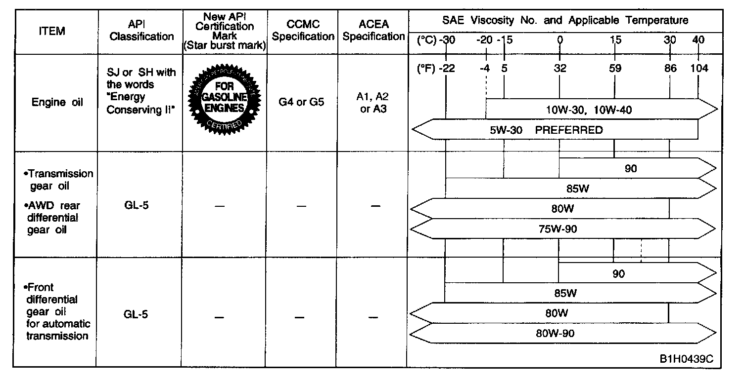- When replenishing oil, it does not matter if the oil to be added is a different brand from that in the engine; however, use oil having the API classification and SAE viscosity No. designated by SUBARU.