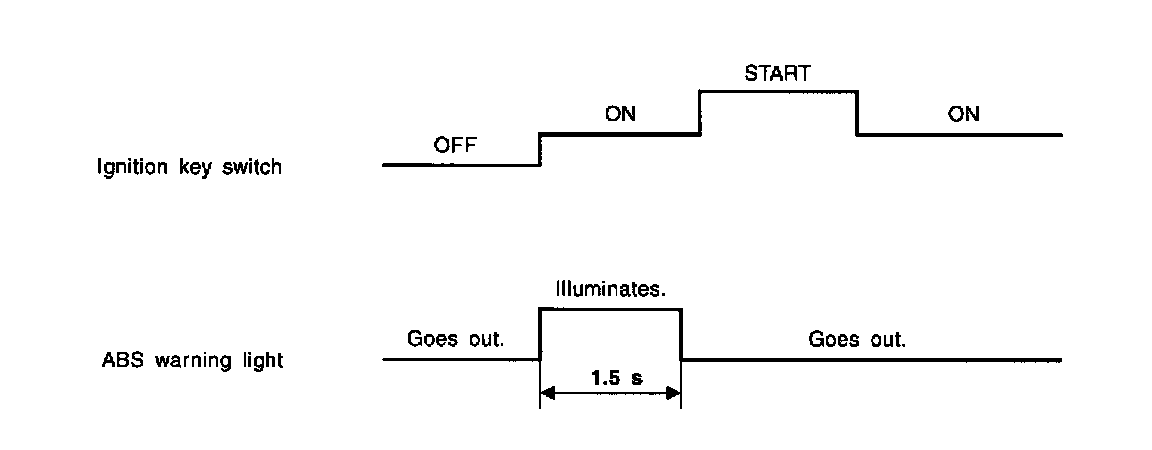 1. When the ABS warning light does not illuminate in accordance with this illumination pattern, there must be an electrical malfunction.