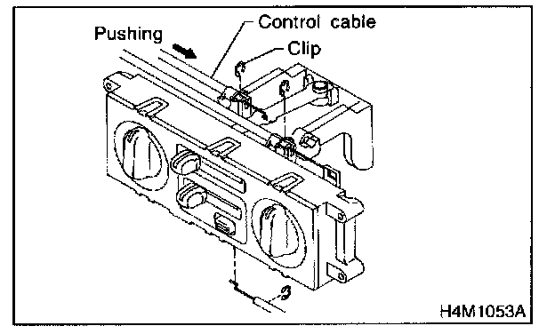 2. Install control cable to lever. While pushing outer cable, secure control cable with clip.