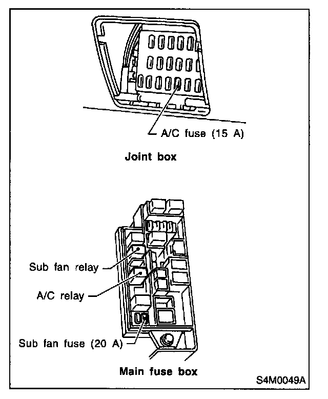 Relays used with A/C system are located as shown in the figure.