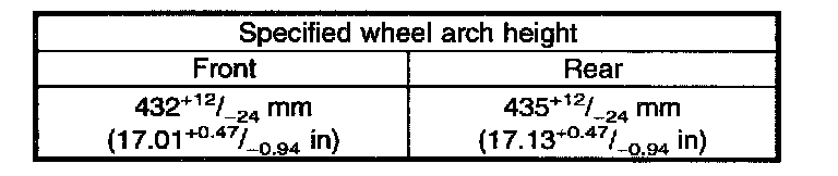 Check, adjust and/or measure wheel alignment in accordance with procedures indicated in figure: Specified wheel arch height