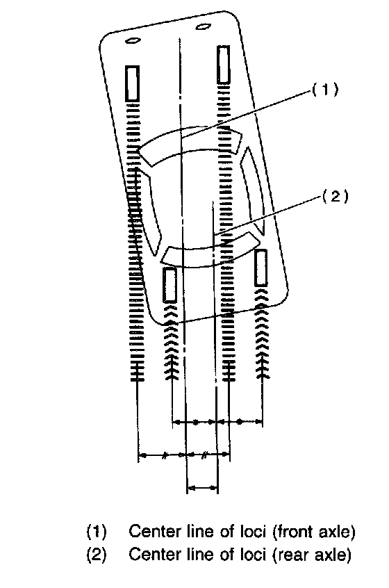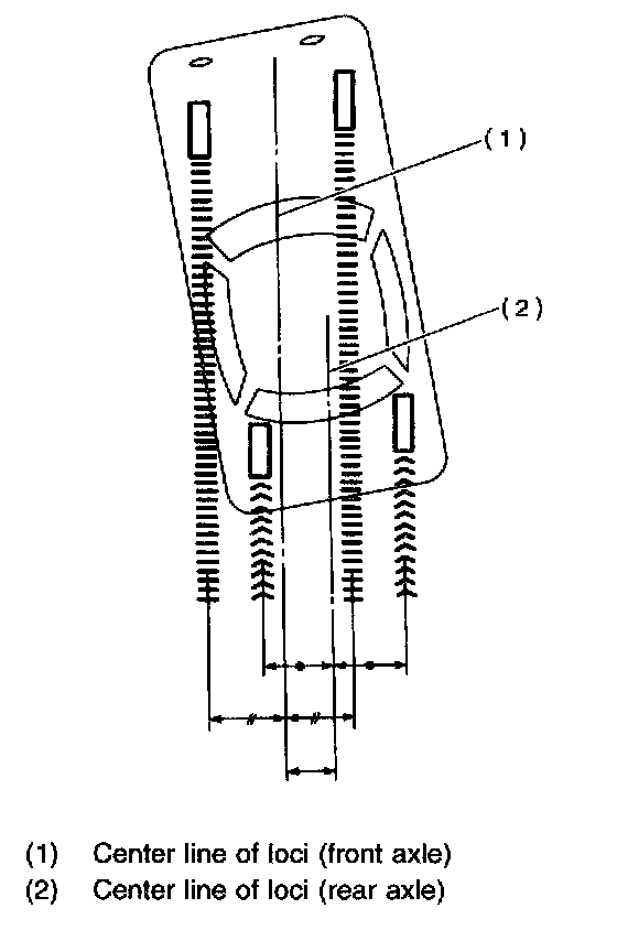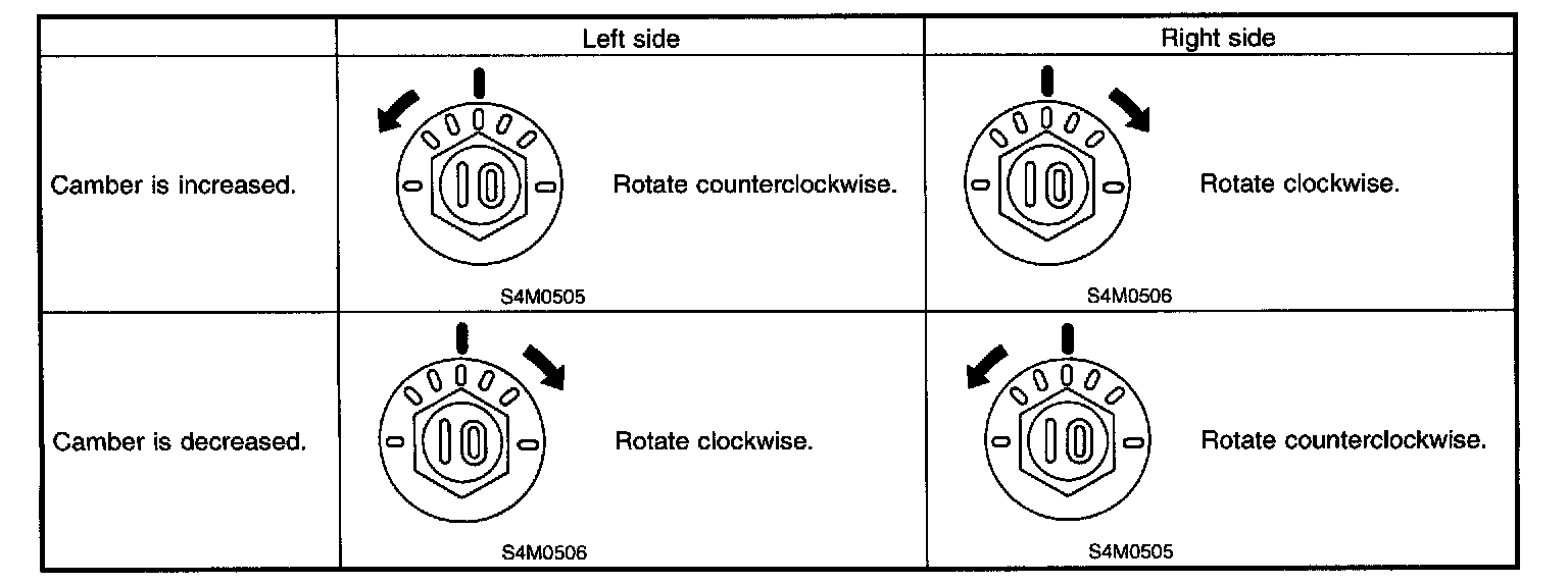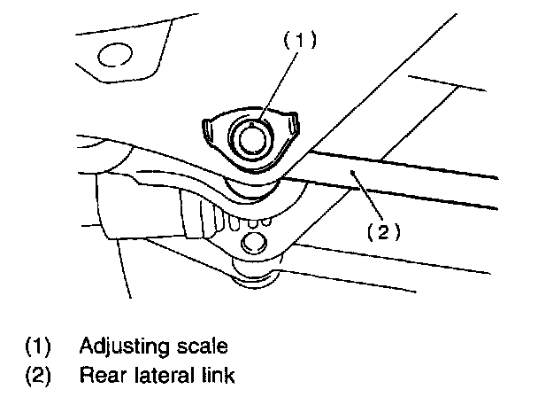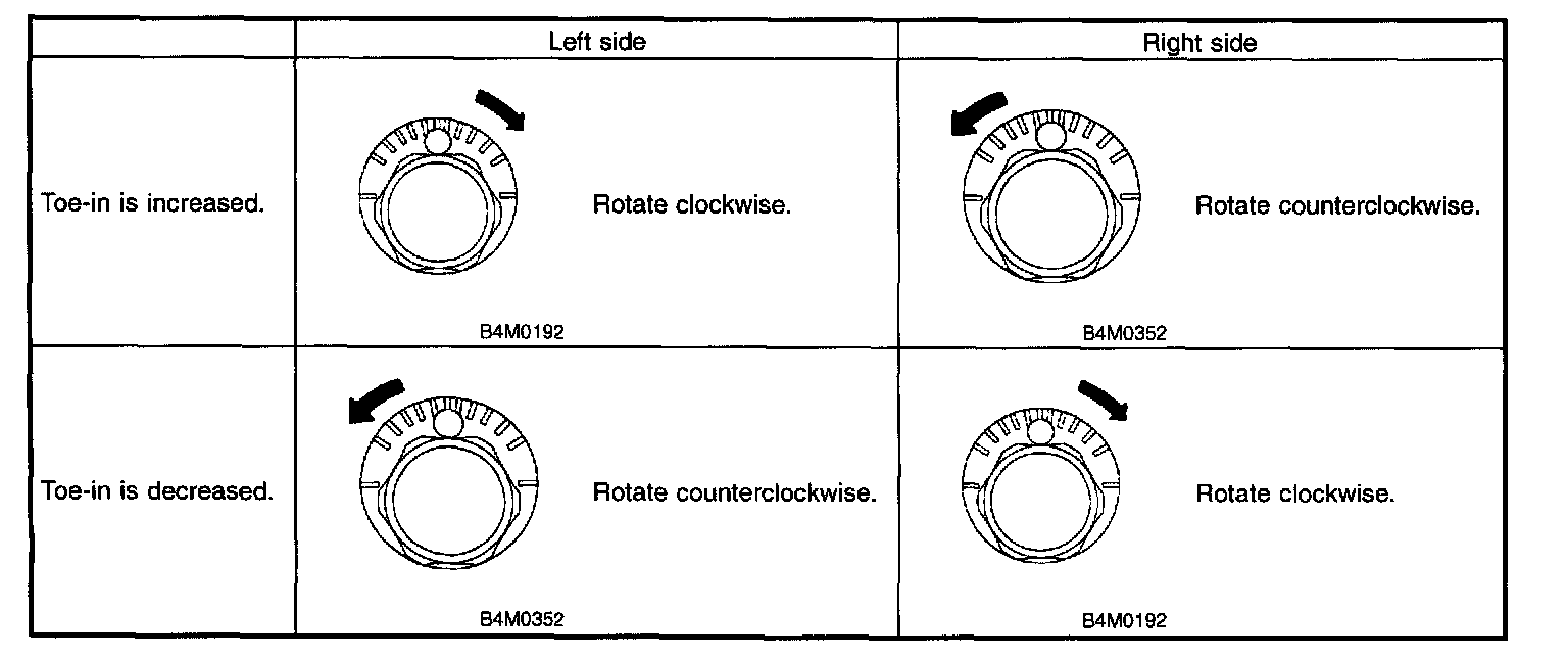 2. When one rear wheel is adjusted in a toe-in direction, adjust the other rear wheel equally in toe-out direction, in order to make thrust angle adjustment.