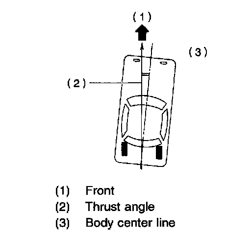 NOTE: Thrust angle refers to a mean value of left and right rear wheel toe angles in relation to vehicle body center line. Vehicle is driven straight in the thrust angle direction while swinging in the oblique direction depending on the degree of the mean thrust angle.